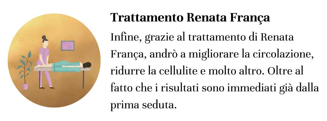 Sono anche operatrice certificata del drenaggio Metodo Renata França, una tecnica rinomata per favorire il drenaggio linfatico e migliorare la circolazione, che mi permette di offrire un'ulteriore dimensione di benessere ai miei pazienti.